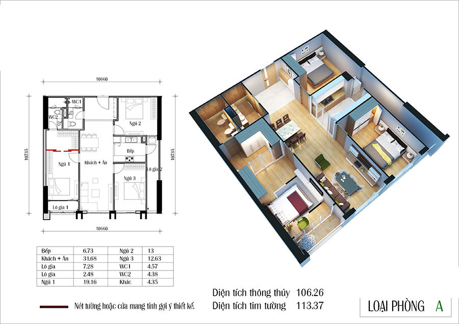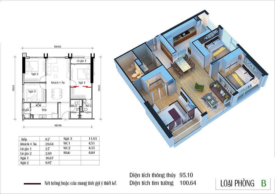 – Căn hộ 3PN (90–110m²): dành cho gia đình nhiều thế hệ hoặc khách hàng yêu thích không gian rộng rãi. Thiết kế sang trọng, đầy đủ công năng, phòng ngủ master có WC riêng.