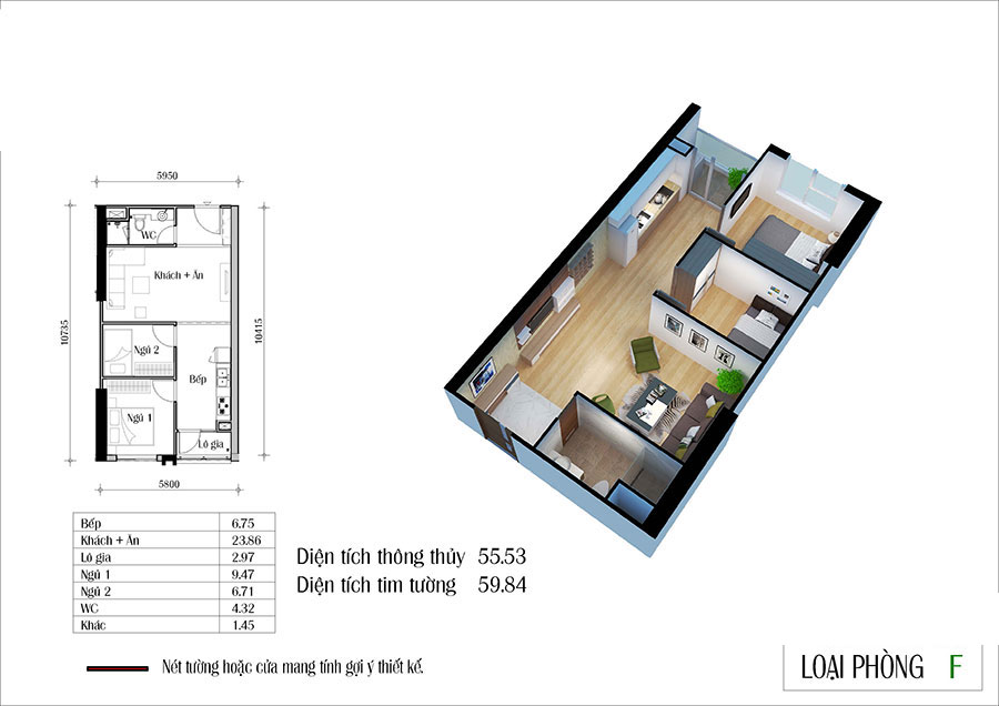 – Căn hộ 1PN (45–55m²): dành cho người độc thân, cặp vợ chồng trẻ hoặc nhà đầu tư cho thuê. Không gian tối ưu, chi phí vừa tầm.
